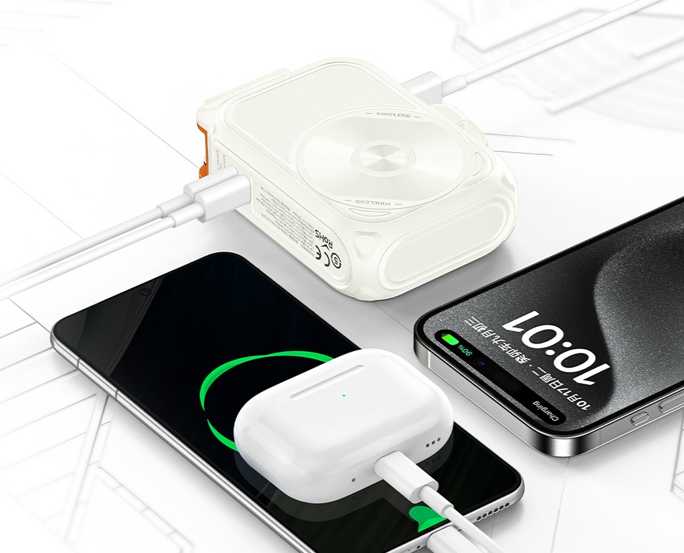 شحن سريع عبر منافذ متعددة (USB / Type-C / Wireless).